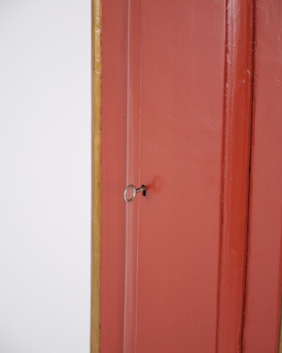 Bornholm longcase clock from the 1820s, red painted with decorative carved details and classic period styling. An original antique clock with strong character and authentic craftsmanship.
