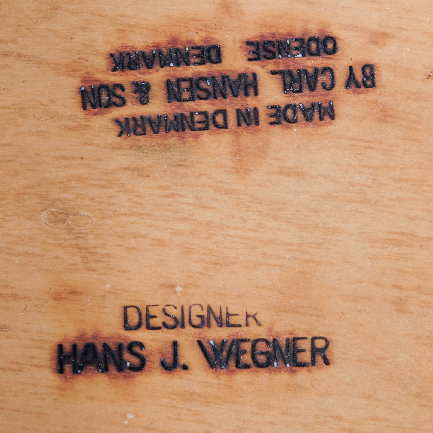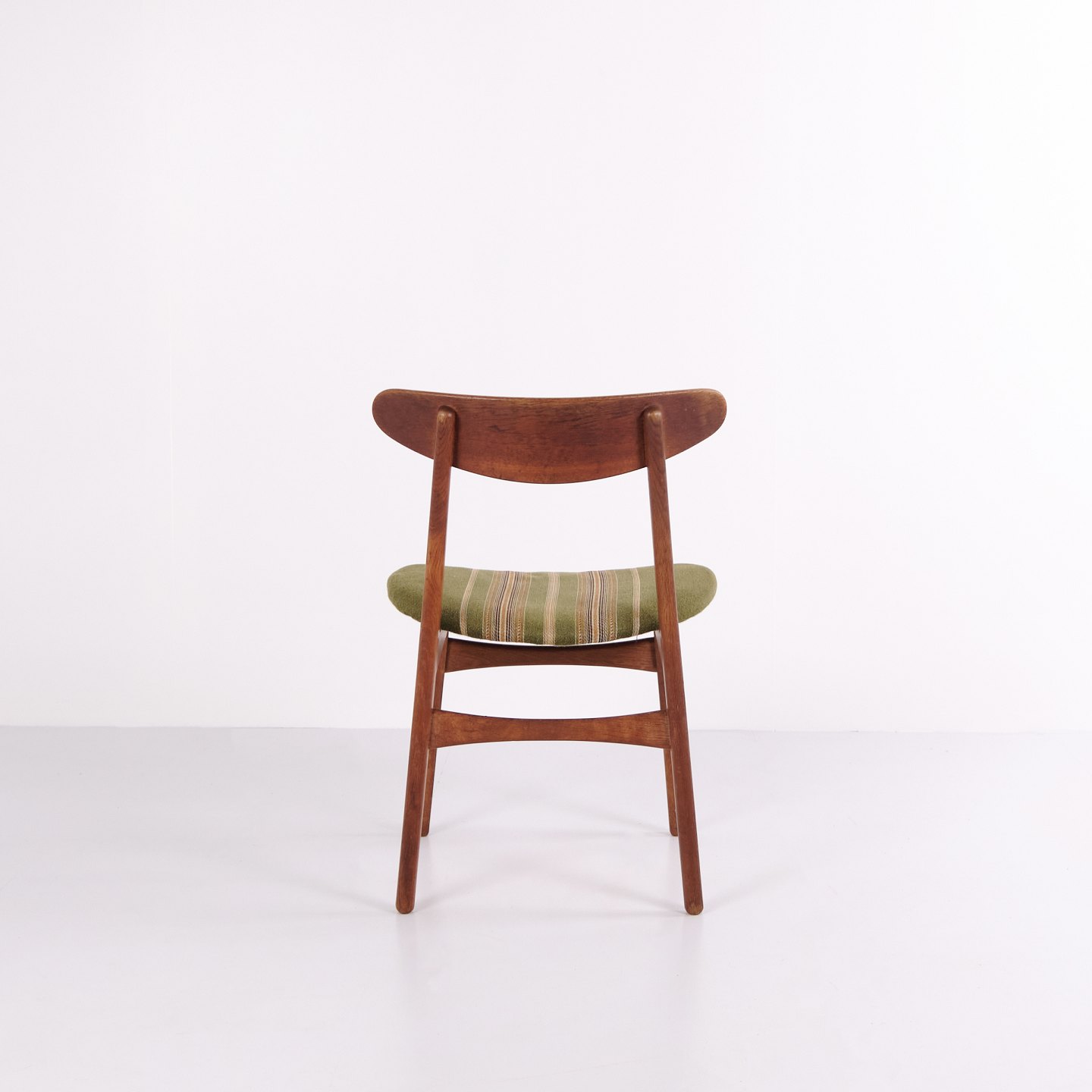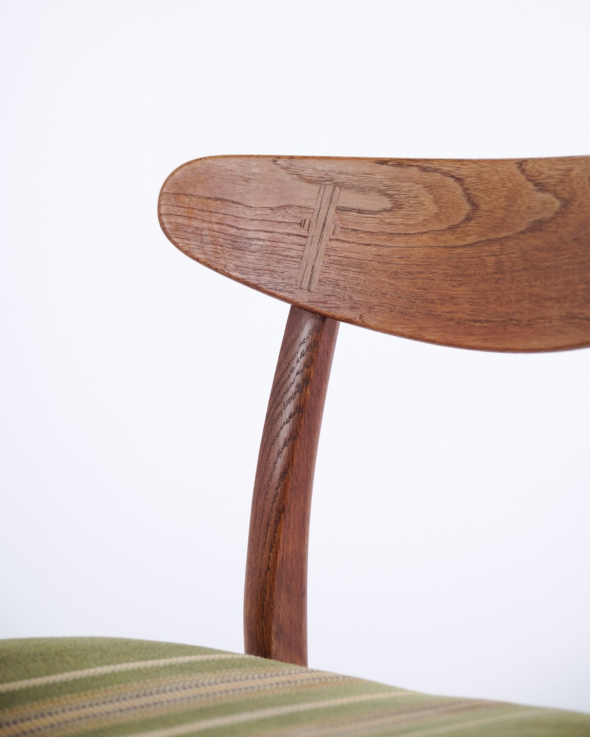 Sæt af seks spisebordsstole, model CH30, designet af Hans J. Wegner i 1954 og produceret i 1950’erne. Stolene er udført i teak og eg med originalt brændemærke. En klassisk Wegner-model med god siddekomfort og velkendt håndværk fra perioden.