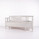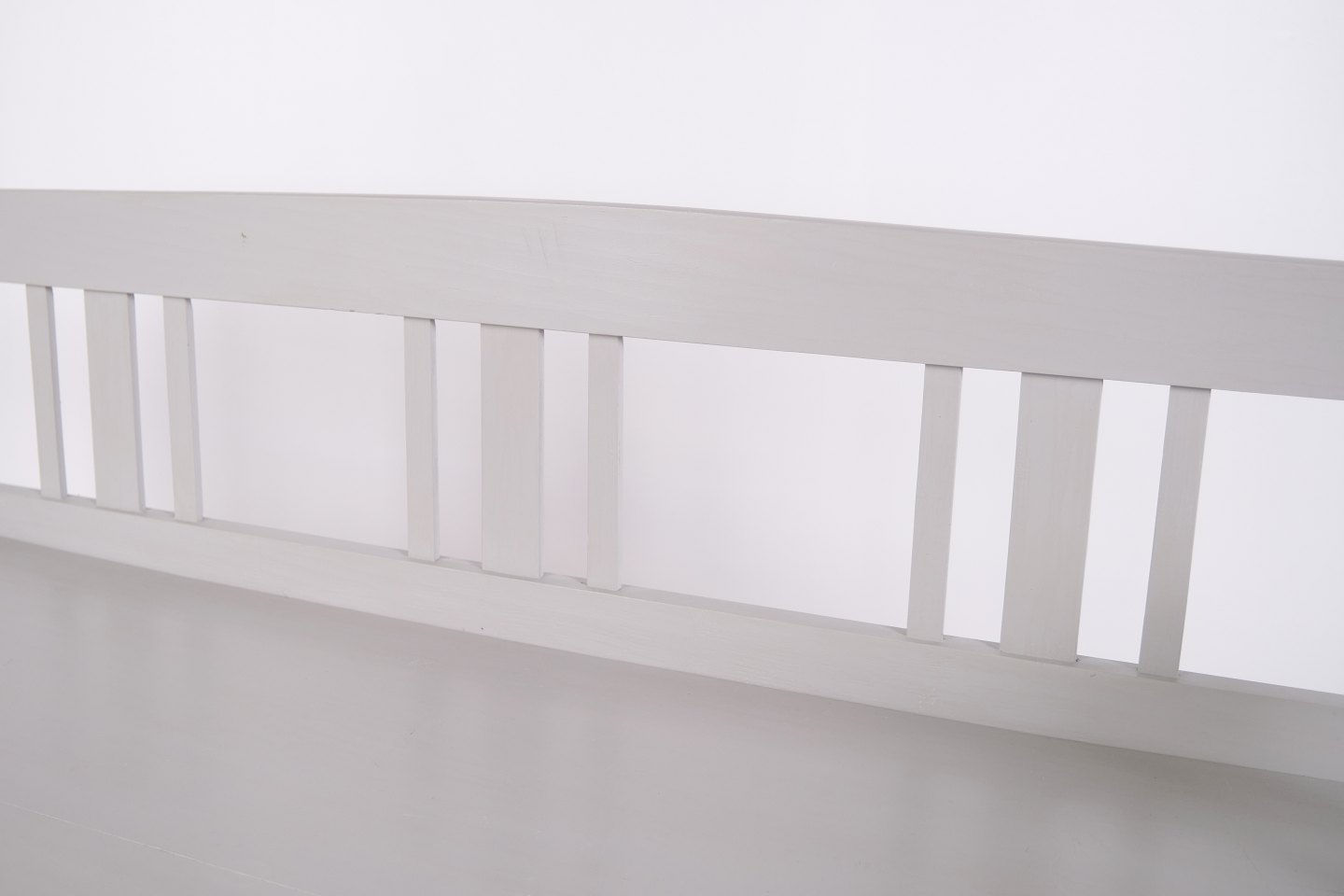Antik slagbænk 1860’erne i gråmalet fyrretræ med opbevaring. Antik opbevaringsbænk 1800-tallet.