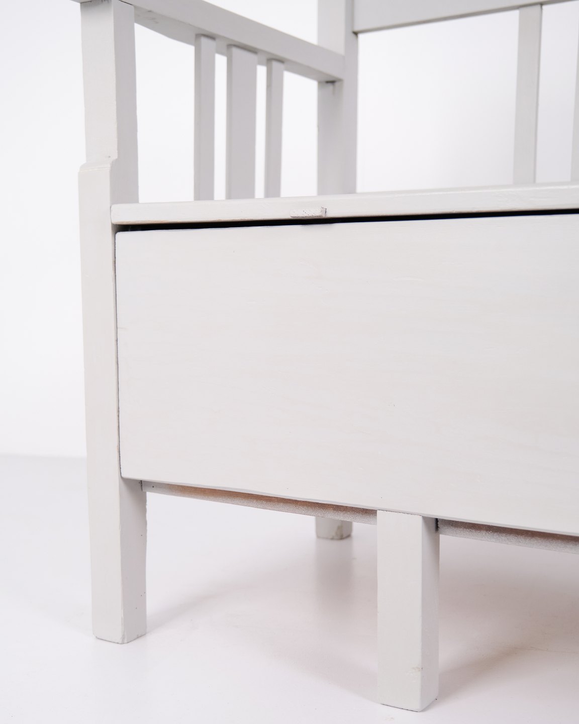 Antik Slagbænk Med Opbevaring - Gråmalet - Fyrretræ - År 1860erne