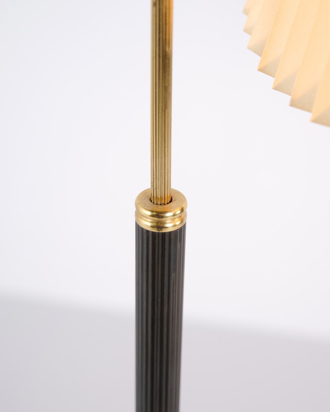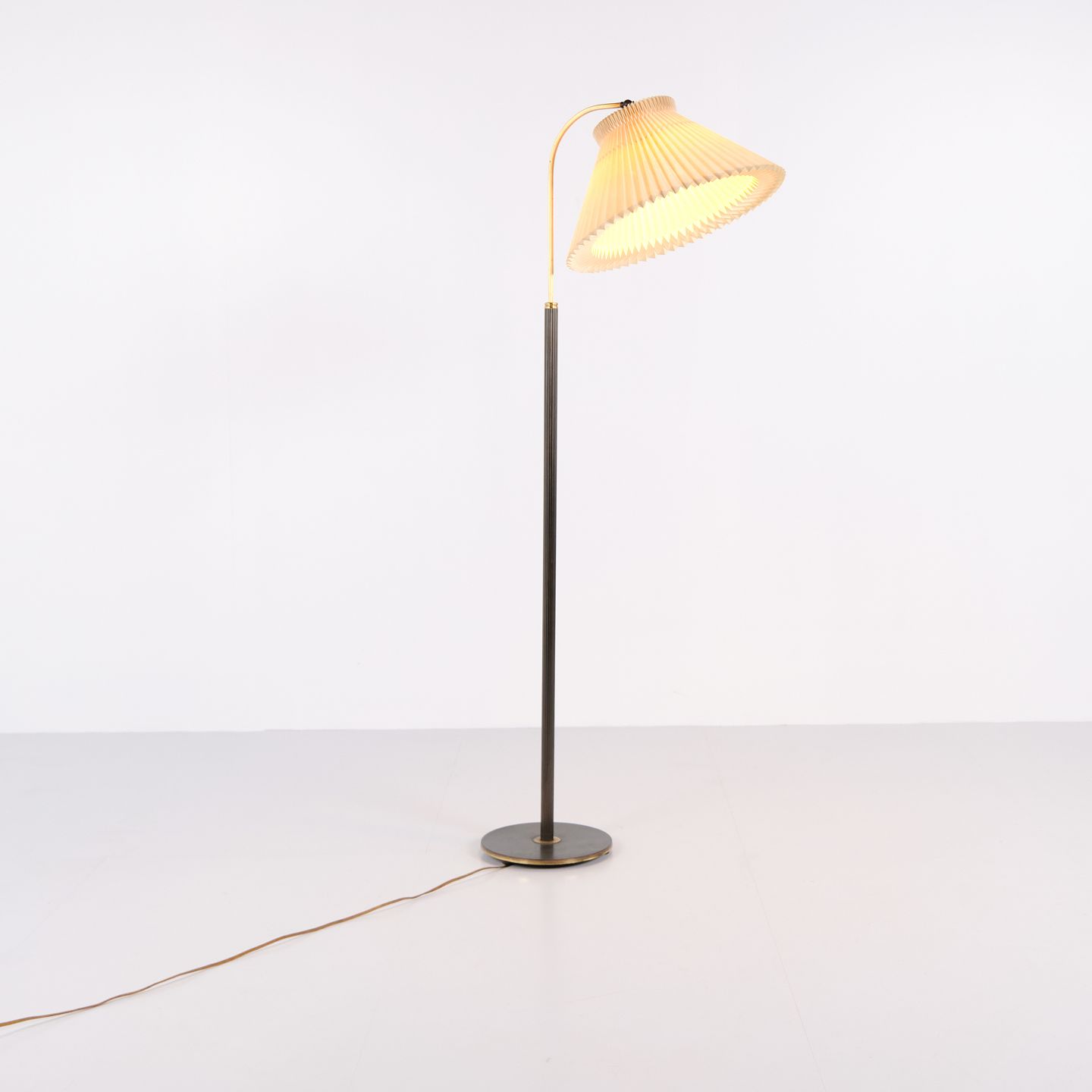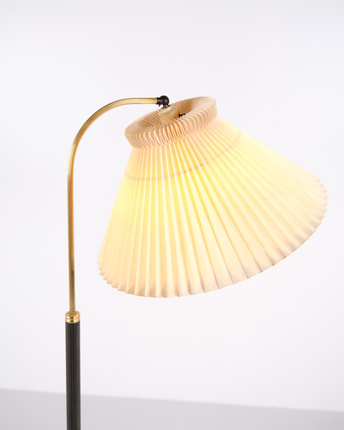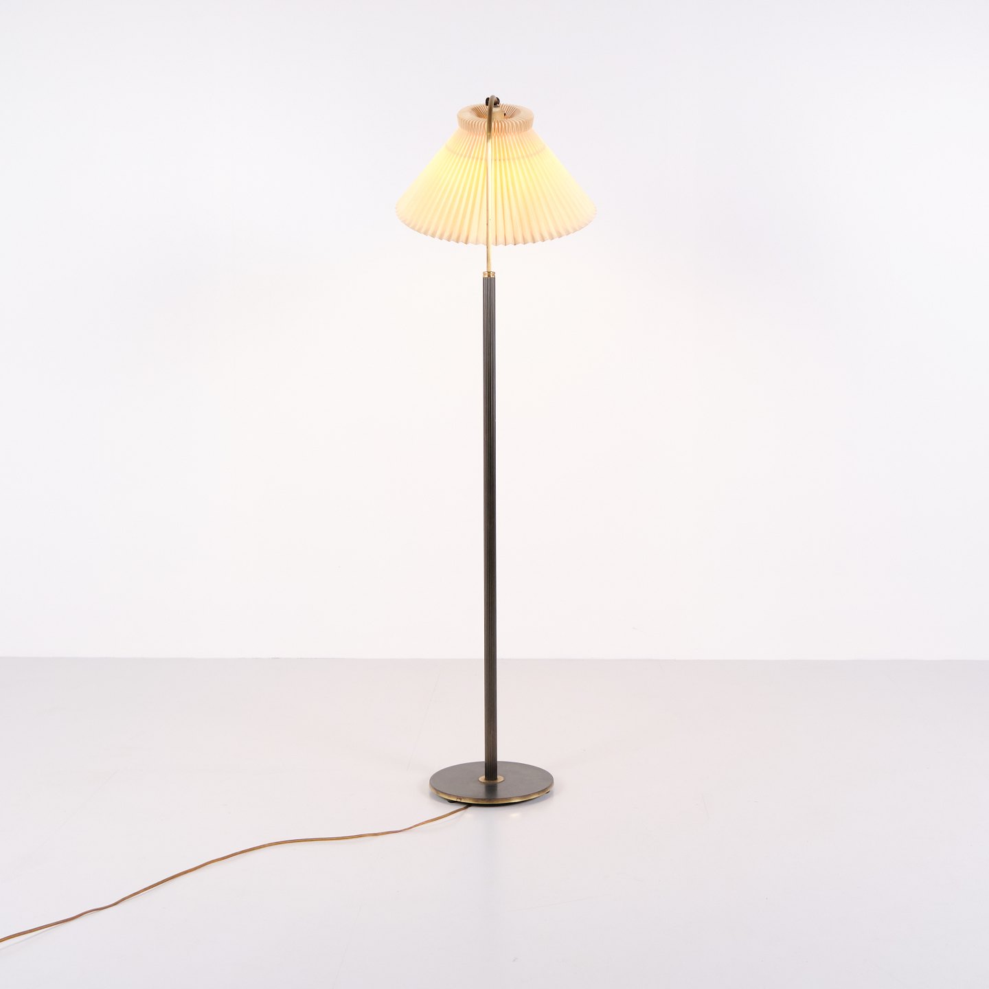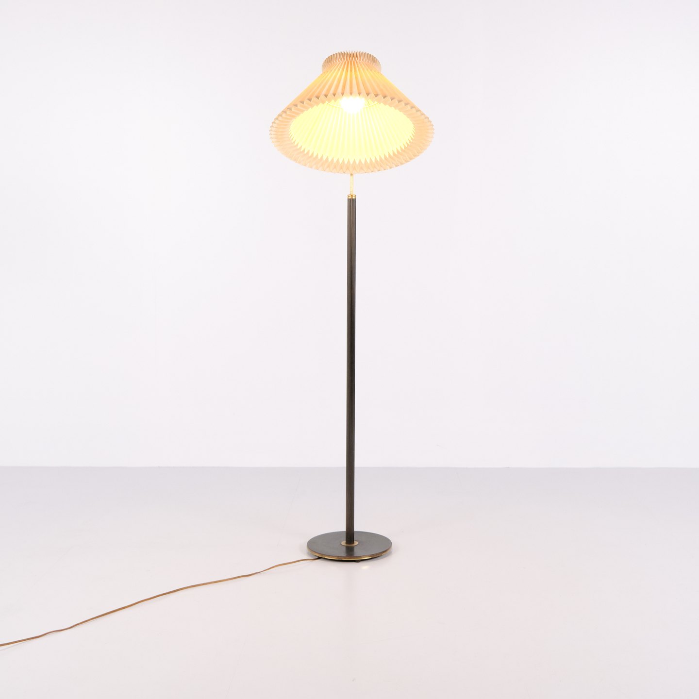 Le Klint gulvlampe 1960’erne i messing med plisseret skærm. Vintage Le Klint standerlampe dansk belysning.