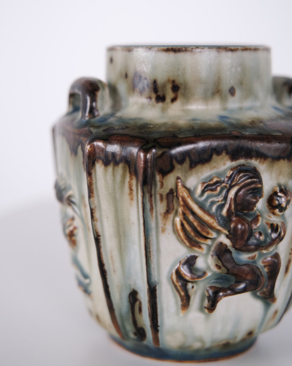 Stentøjsvase designet af Bode Willumsen for Royal Copenhagen. Vasen er modelleret i stentøj med reliefdekoration og produceret hos Royal Copenhagen i perioden 1969–1973. Modellen er kendt for sin plastiske overfladebehandling og tydelige håndværksmæssige udformning. Stemplet og signeret med monogram samt modelnummer 20121.