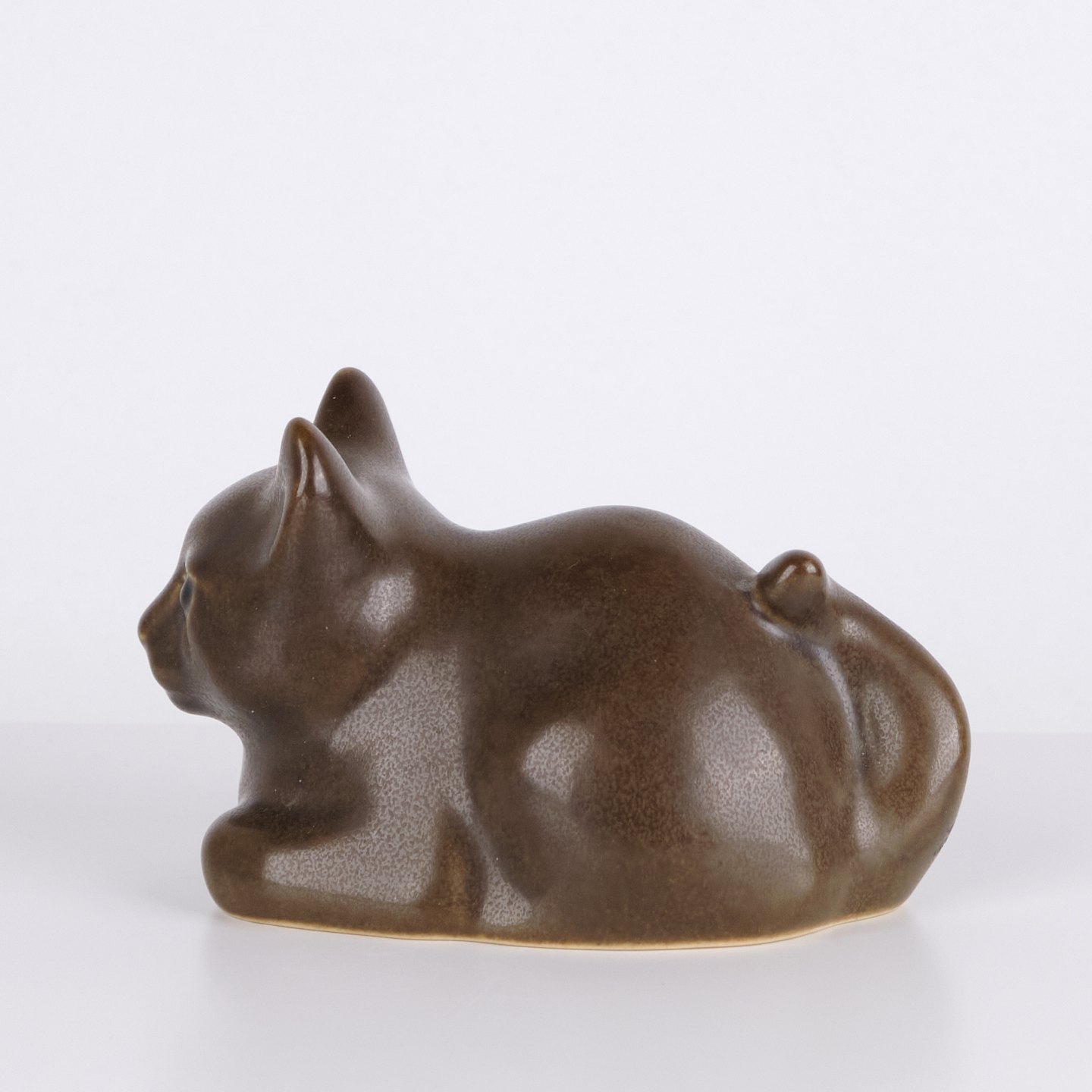 Kattefigur af Knud Basse udført som vase i brun glaseret keramik.