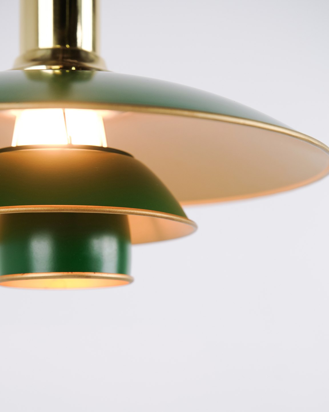 PH 3/2 pendel designet af Poul Henningsen og udgivet som jubilæumsudgave i 1996 af Louis Poulsen. Lampen er udført i messing med grønne metalskærme, hvilket giver modellen et markant og klassisk udtryk. PH 3/2 er en af Poul Henningsens kendte treskærmslamper, udviklet med fokus på blændfrit og behageligt lys. Jubilæumsudgaven blev kun produceret i en begrænset periode og findes også i en variant med røde metalskærme.