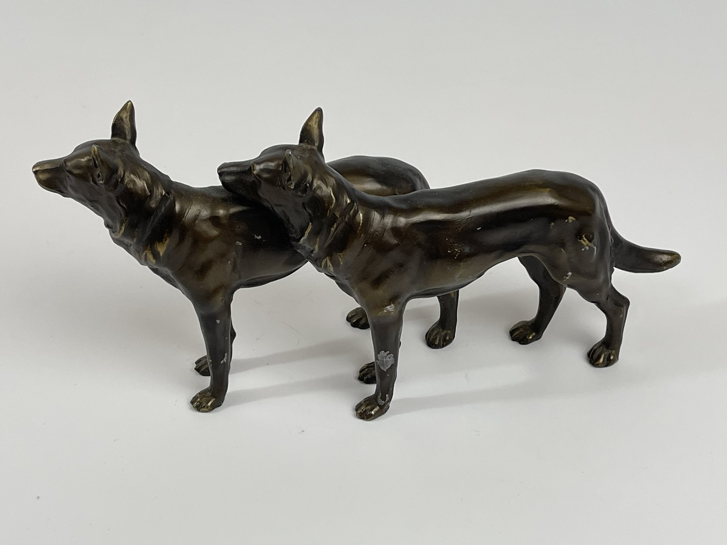 Vægt - figur af par schæferhunde af spelt / metal: Cirka 1037 gram.