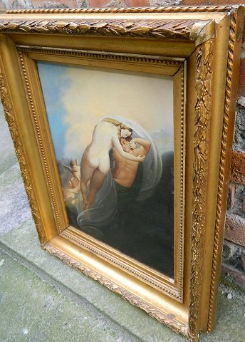 19. årh. maleri. Motiv med Venus med Amor og Mars. Fremstår restaureret og retoucheret. Ubekendt kunstner. Sign. L.D. F.38 x 29 (53 x 44) cm.