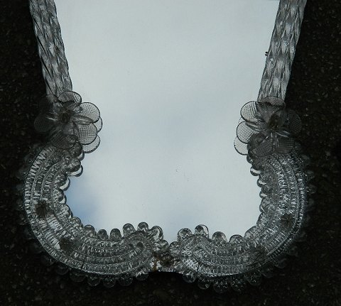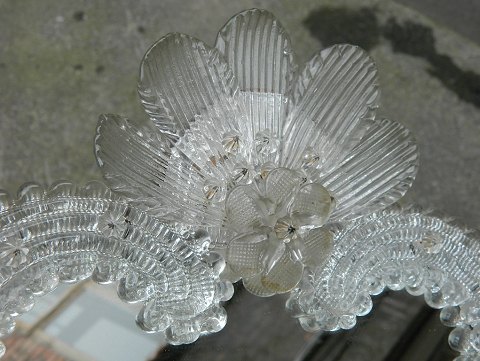 Italiensk spejl fra omkring 1940. Dekoreret med glasramme og blomster i glas. I perfekt stand. 50 cm