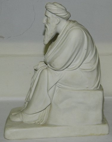 Figur i bisquit af siddende mand. Figuren tilhører Bertel Thorvaldsen´s (1770-1844) figurgruppe med Johannes Døberen. Denne ses over indgangspartiet ved Vor Frue Kirke. Stemplet med B&G på undersiden. I god stand uden skader eller reparationer. 20 cm høj.