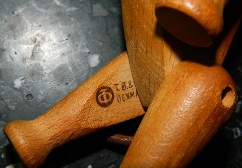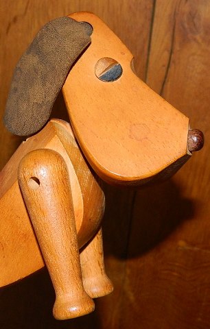 Hunden Oscar - Designet af Hans Bølling i 1953. Fremstillet i træ. Ører i læder. Denne figur er fra begyndelsen af produktionsperioden. Har aldersrelateret patina. Fremstår i god stand. Ingen skader eller reparationer. Fabriksmærket på det ene ben. 9 cm høj og 14 cm lang.