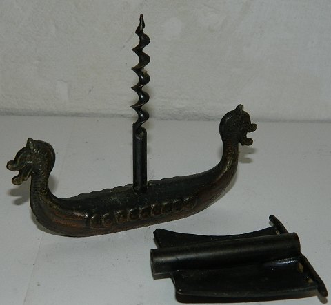 Vikingskib som proptrækker. I perfekt stand. Fremstillet omkring 1940. 9 cm høj.