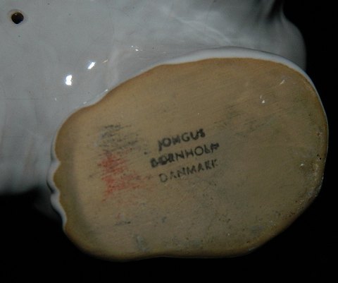Isbjørn i keramik fra den bornholmske keramikfabrik Johgus, der eksisterede på Bornholm i perioden 1944-1999. Figuren er i perfekt stand. Fabriksmærket under det ene ben.