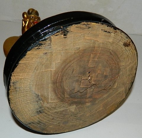 Figur af siddende kinesisk mand fra begyndelsen af 20. århundrede i Kina. Guldbemalet. I god stand uden skader. Soklen er bemalet sort. 26½ cm høj. Soklen er 16½ cm i diameter.