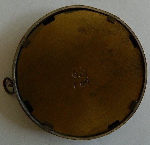 Oval ramme i tin af Mogens Ballin. I perfekt stand. Ingen skader eller reparationer. Stemplet MB samt modelnummer T60.. Fremstillet omkring år 1900. Mål: 8 cm i diameter.