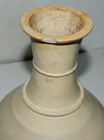 Vandkaraffel i teracotta med prop. Fremstår i god stand bortset fra mindre skår ved åbningen. Fabriksmærket fra Bornholm med E. F. Sonne samt Chr. Møller og model nummer 17. Karaflen er 27½ cm høj. Fra slutningen af 19. århundrede.