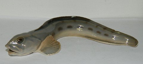 Skønvirkestil: Lille bladformet skål i porcelæn med dekoration af guldsmed fra Bing & Grøndahl fra ca. 1920. Fremstår i god stand uden skader eller reparationer. Fabriksmærket på bagsiden. 1½ cm høj og 9½ cm lang.