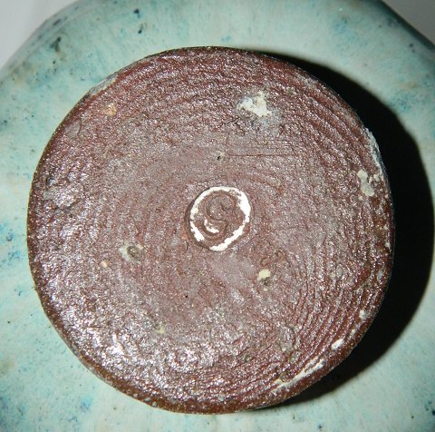 Lågskål i keramik af Gutte Eriksen. Underskål på fod - dekoreret med hanke. Stempeldekoration rundt om skålen. Fremstår i perfekt stand. Signeret af kunstneren på bunden. 10½ cm høj.