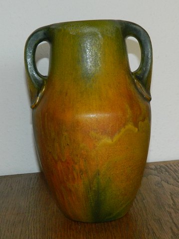 Vase i keramik fra Peter Ipsen. Dekoreret i skønvirkestil. Fremstår i perfekt stand. Fabriksmærket på bunden med P. Ipsen, Denmark samt modelnummer 489. Tidlig 20. århundrede 22 cm høj.