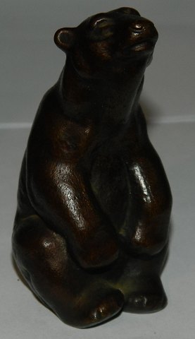 Isbjørn i bronze af Svend Lindhardt. Lavet ved Brødr. Grage´s Bronzestøberi. Fremstår i perfekt stand. Signeret af kunstneren med initialer S.L. 10 cm høj.