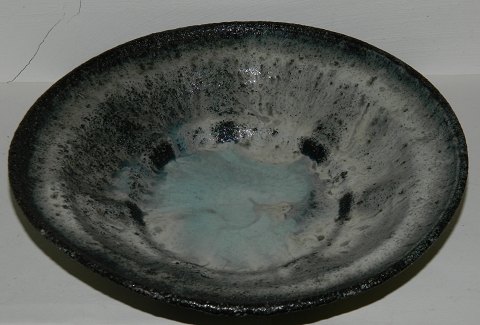 Glaseret fad i keramik af Gutte Eriksen (1918-2008). Fremstår i perfekt stand. Stempel signatur på undersiden. 5 cm høj og 21½ cm i diameter.