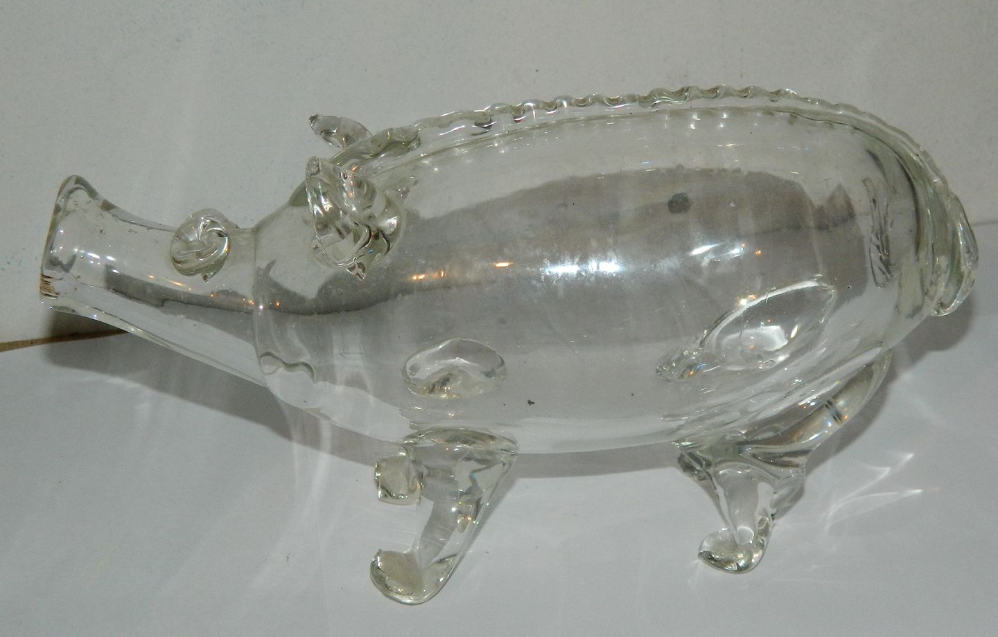 Fyldegris i glas. Fremstår i god stand uden skader eller reparationer. Fremstillet i 20. århundrede. 11½ cm høj og 14 cm lang.