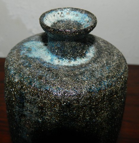 Glaseret flaskeformet vase af Gutte Eriksen(1918-2008). Fremstillet på hendes eget værksted. Fremstår i perfekt stand. Stempelsignatur på bunden. 16 cm høj.