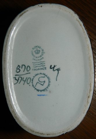 Flad oval vase i fajance fra Royal Copenhagen. Designet af Nils Thorsson. Fremstår i perfekt stand. 1. sortering. Ingen skader eller reparationer. Fabriksmærket sammen med kunstnersignatur på bunden. 15½ cm høj.