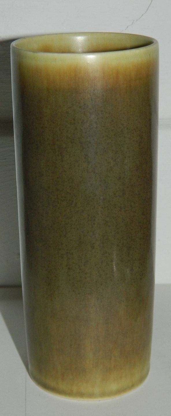 Vase i keramik i cylinderform fra Palshus. Dækket af en brun "harepels glasur". Designet omkring 1970 af Palshus´grundlægger Per Linnemann-Schmidt. Fremstår i perfekt stand. 1. sortering. Modelnummer 1203, fabriksnavn samt kunstnersignatur indridset på undersiden. 15 cm høj.