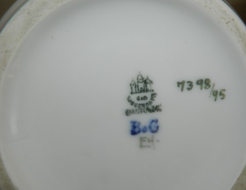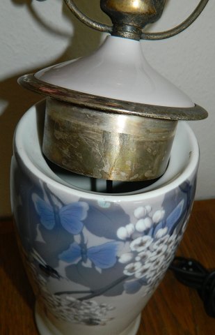 Art Nouveau: Lampefod i porcelæn fra Bing & Grøndahl. Dekoreret med blomster, bier og sommerfugle. Fremstillet i første halvdel af 20. århundrede. Fremstår i god stand. 1. sortering. Fabriksmærket på bunden. 32 cm høj. 53 cm inclusive monteringen.