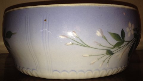 Skål i porcelæn fra Bing & Grøndahl. Dekoreret med blomster. Produktionsrevne ved åbningen, der ses både indvendigt og udvendigt. Mindre plet på siden. De to fejl gør at skålen er mærket som 2. sortering. Fabriksmærket på bunden sammen med kunstnersignatur. Skålen er 8½ cm høj og 19 cm i åbnings diameter.