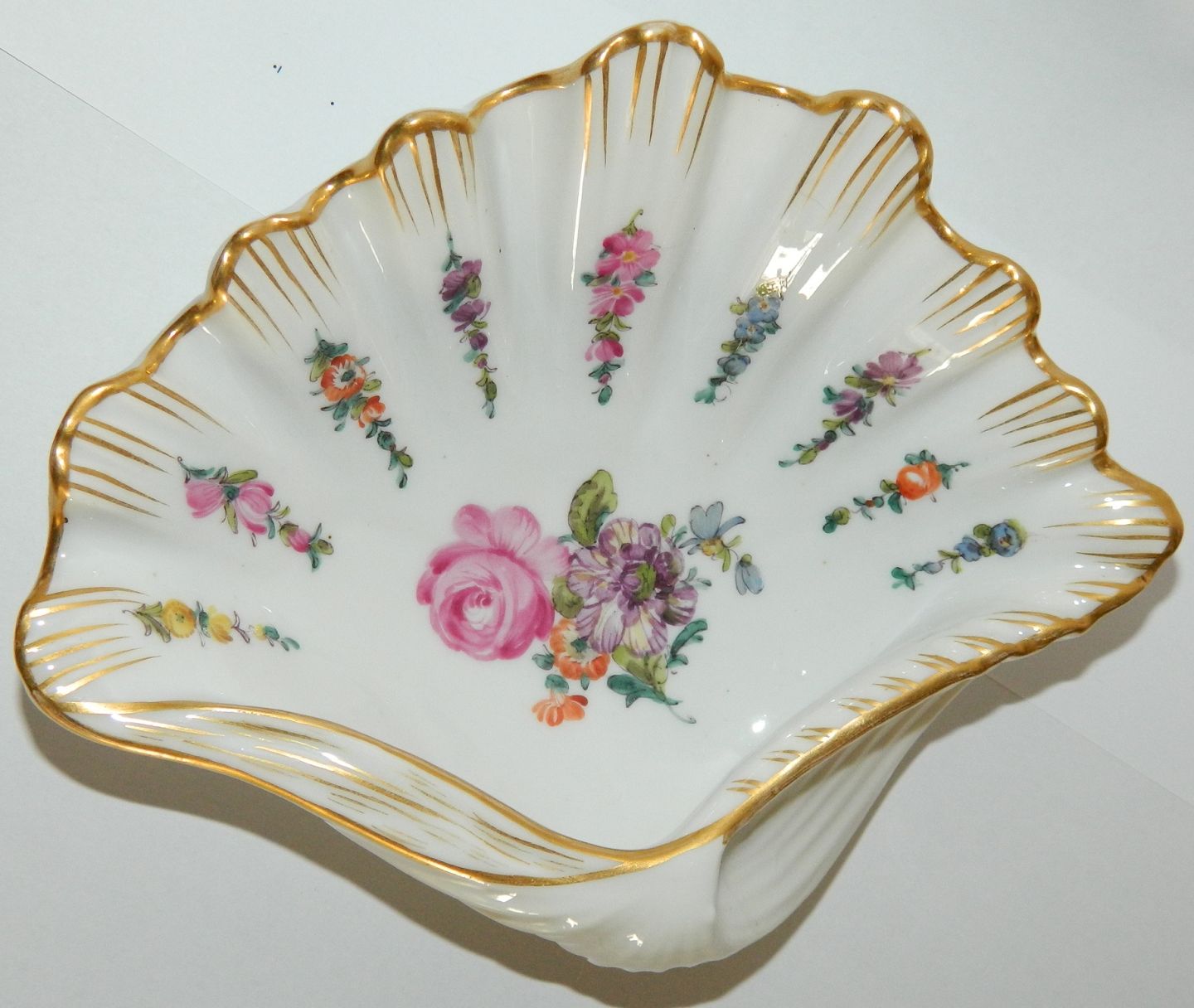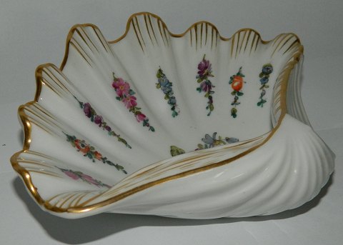 Asiet i form som musling i porceæln fra Royal Copenhagen. Dekoreret i Saxisk blomst. 1. sortering. Fremstår i perfekt stand. Fremstillet omkring 1900. Fabriksmærket på bunden. Mål: 4½ cm høj, 16½ cm bred og 13 cm dyb.