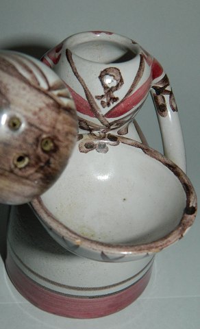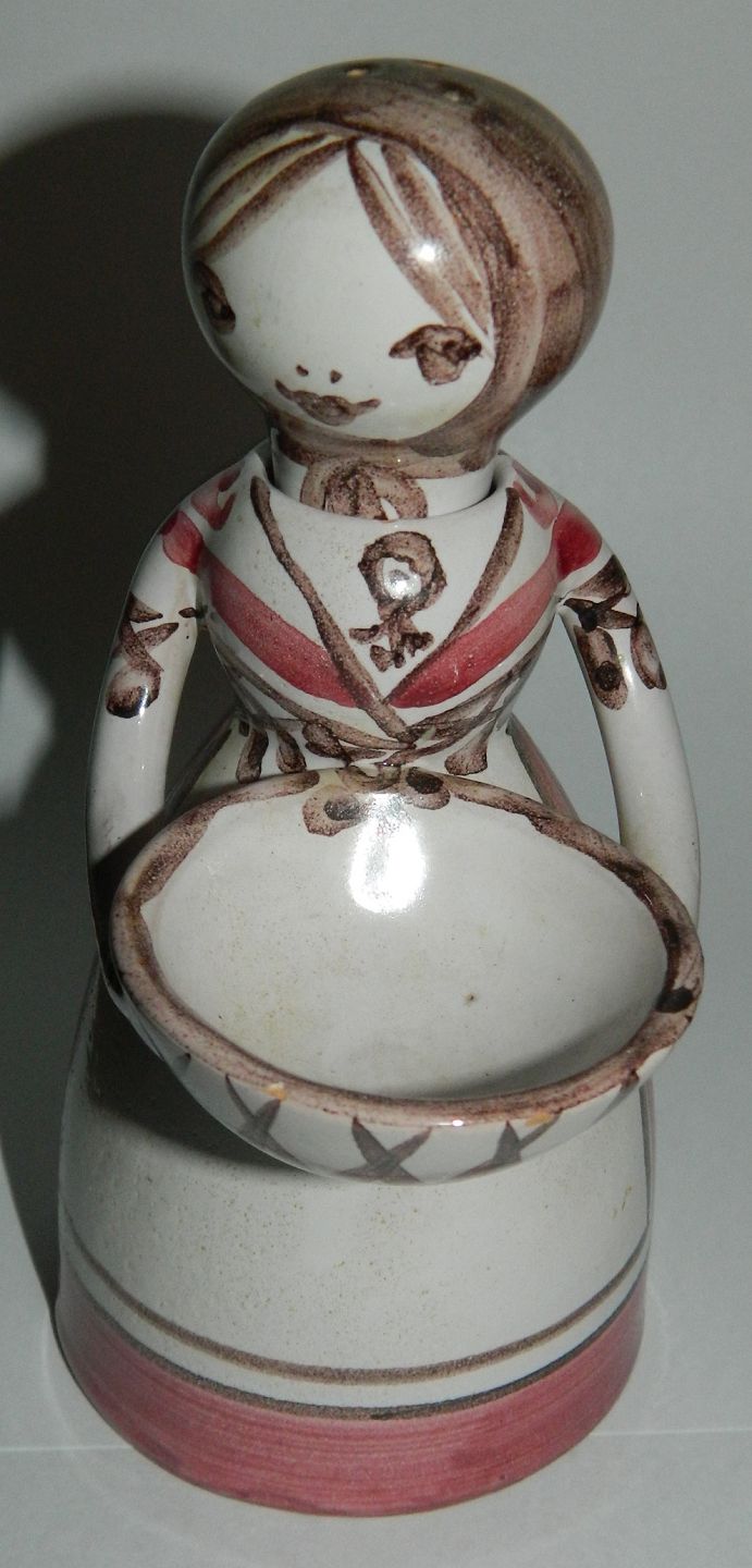 Pebermø: Figur i keramik af kvinde som salt -og peberbøsse fra Lars Syberg keramikfabrik i Taastrup. Fremstår i perfekt stand uden skader eller reparationer. Fabriksmærket på bunden. 16½ cm høj.
