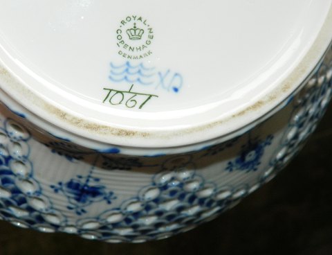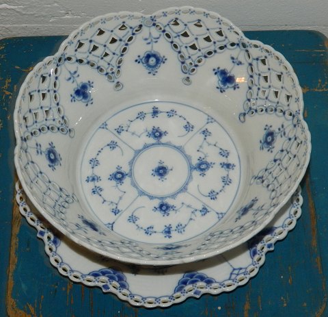 Kgl. helblonde musselmalet frugtskål i porcelæn med tilhørende underfad i