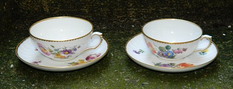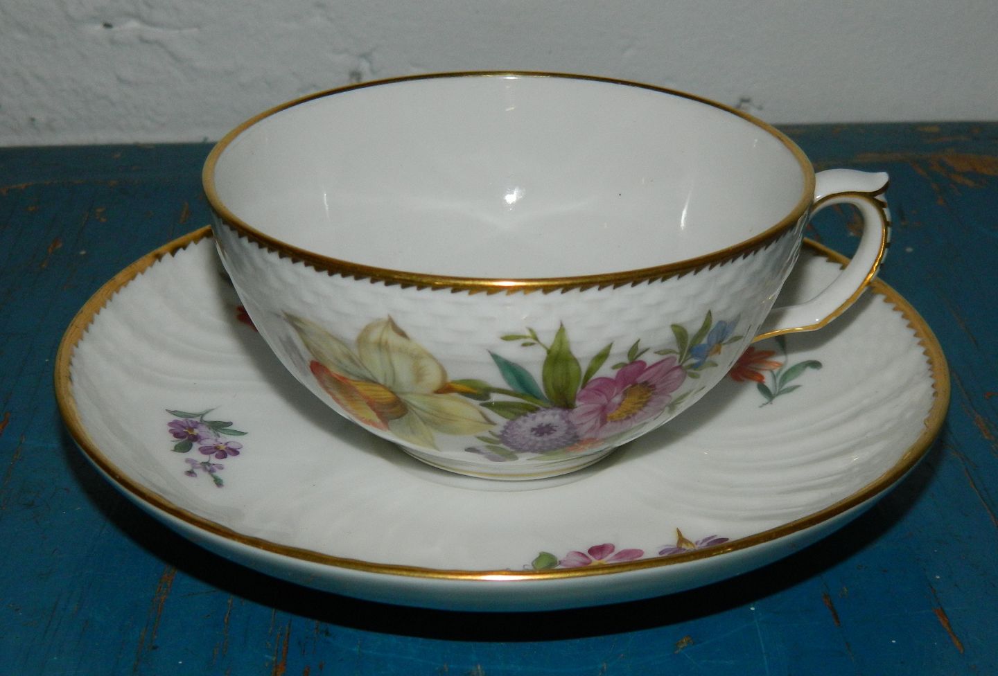 Tekop og underkop i Saxisk Blomst fra Royal Copenhagen. Modelnummer 4/1551. Fremstår i god stand uden skader eller reparationer. Fabriksmærket på bunden. Koppen er 5 cm høj og underkoppen 15 cm i diameter. TO SÆT TILBAGE - DE TO SÆT DER SES PÅ FOTO SAMMEN