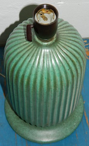 Art Deco fra MA&S: Lampefod i keramik fra Michael Andersen & Søn. Fremstillet omkring 1940. Grønt bemalet henover vertikale ribber rundt om lampen. Stående på flad rund base ! Ingen skader eller reparationer. Fremstår i perfekt stand. Mål: 28 cm - incl. fatning 32½ cm.