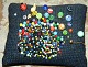 Pude med nipsenåle. Puden er 7½ cm høj - derudover måler den 13 cm x 17 cm.