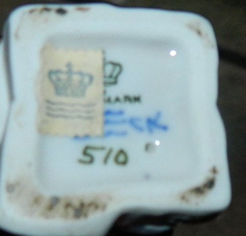 Figur af mus i porcelæn fra Royal Copenhagen. 1. sortering. Modelnummer 510. Fremstår i god stand uden skader eller reparationer. Fabriksmærket på bunden. Ovenpå fabrikslabel i papir. 4 cm høj.