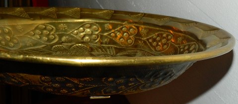 ca. 200 år gammelt dåbsfad med dekorationer ! Repareret - hvilket fremgår af foto´s. Boret hul midt i fadet ! Mål: 7 cm højt og 36 cm i diameter.
