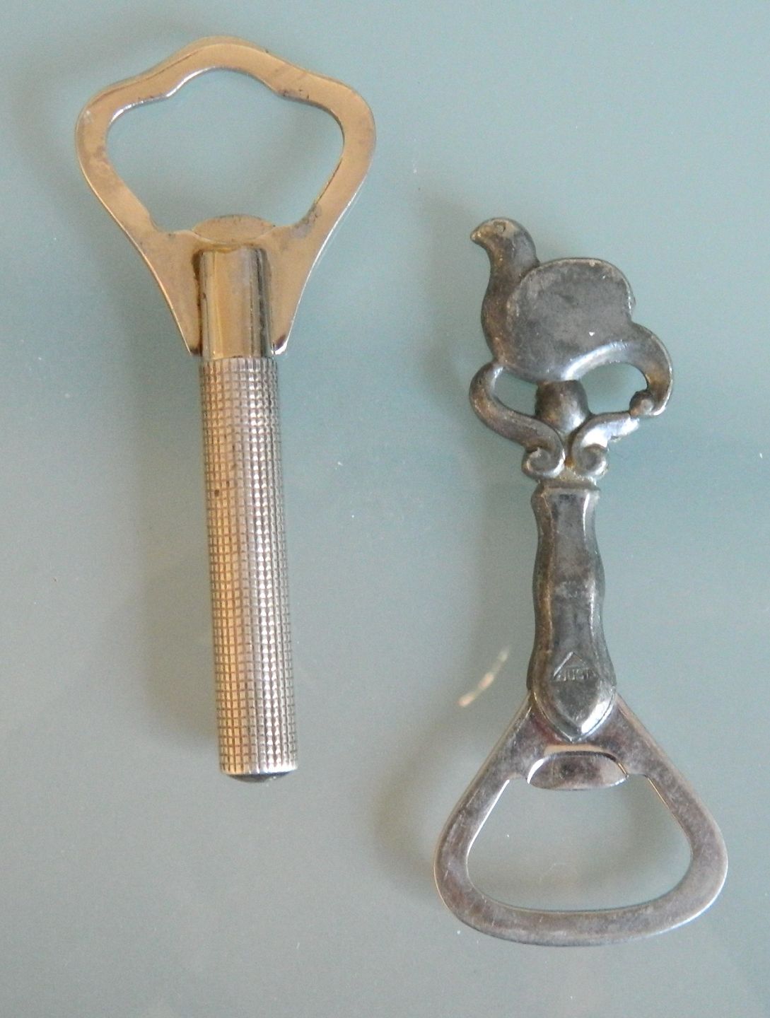 Proptrækker -og oplukker i sølv samt oplukker fra Just A. i tin