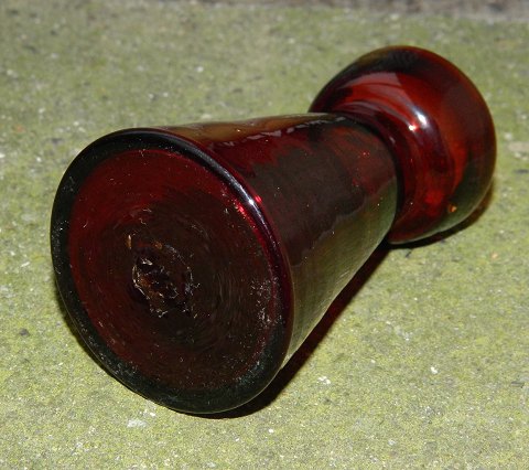 Løgglas til tulipaner fra Holmegaard Glasværk ca. 1900 i rødt glas. Fremstår i perfekt stand. Navlemærket (knækket) på bunden. 10 cm højt.