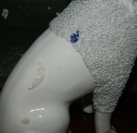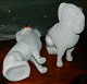 Større par Staffordshire hunde i fajance fra England. Fremstillet i slutningen af 19. århundrede. Fremstår i god stand. Den ene med mindre blå misfarvning samt brændingsfejl. Ellers intet at bemærke. Ingen konkrete skader eller reparationer. 26 cm høje.