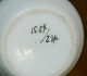 Lille olielampe i hvidt glas samt hvid skærm i glas. Dekoreret med svaler. Fremstillet hos Fyens Glasværk omkring 1900. Fremstår i perfekt stand. Ingen skader eller reparationer. Modelnummer på bunden. Total 21 cm høj.