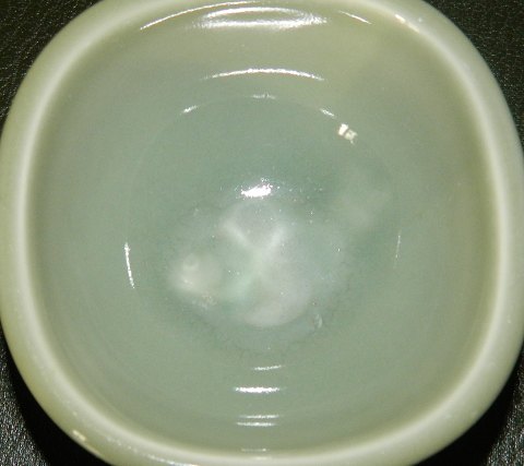 Lille skål i stentøj dækket af celadon glasur af Nils Thorsson for Royal Copenhagen. Dekoreret med fisk i bunden af skålen. Fabriksmærke samt kunstnersignatur på bunden. 1. sortering. Ingen skader eller reparationer. Mål: 4½ cm høj og 9 cm x 9 cm i åbningen.