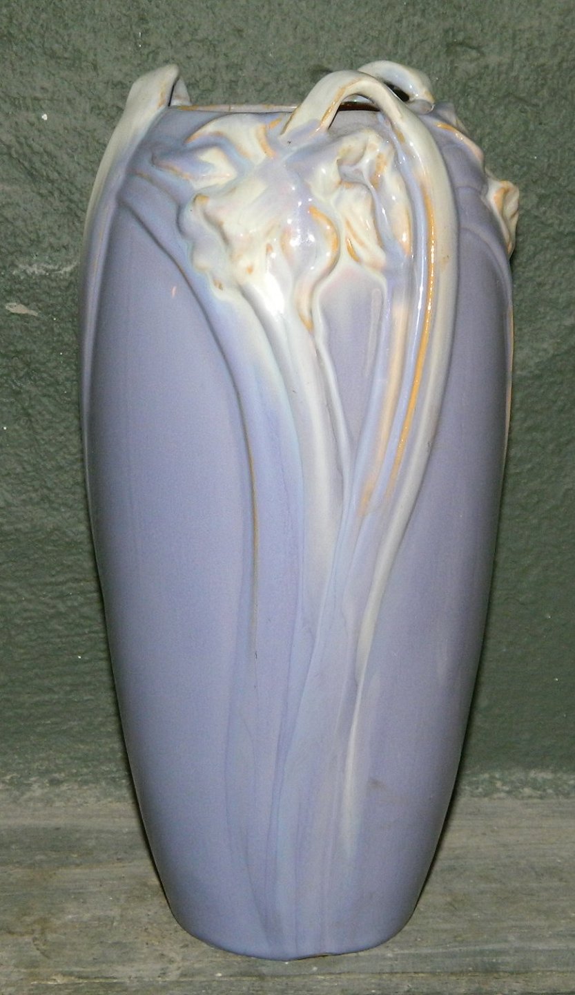 Vase i skønvirkestil fra Michael Andersen & Søn, Bornholm, med organisk blomster dekoration i form af narcisser i gennembrudt kant Fremstår i god stand uden skader eller reparationer. Fremstillet i begyndelsen af 20. århundrede. Fabriksmærket på bunden (MA&S). H. 24 cm