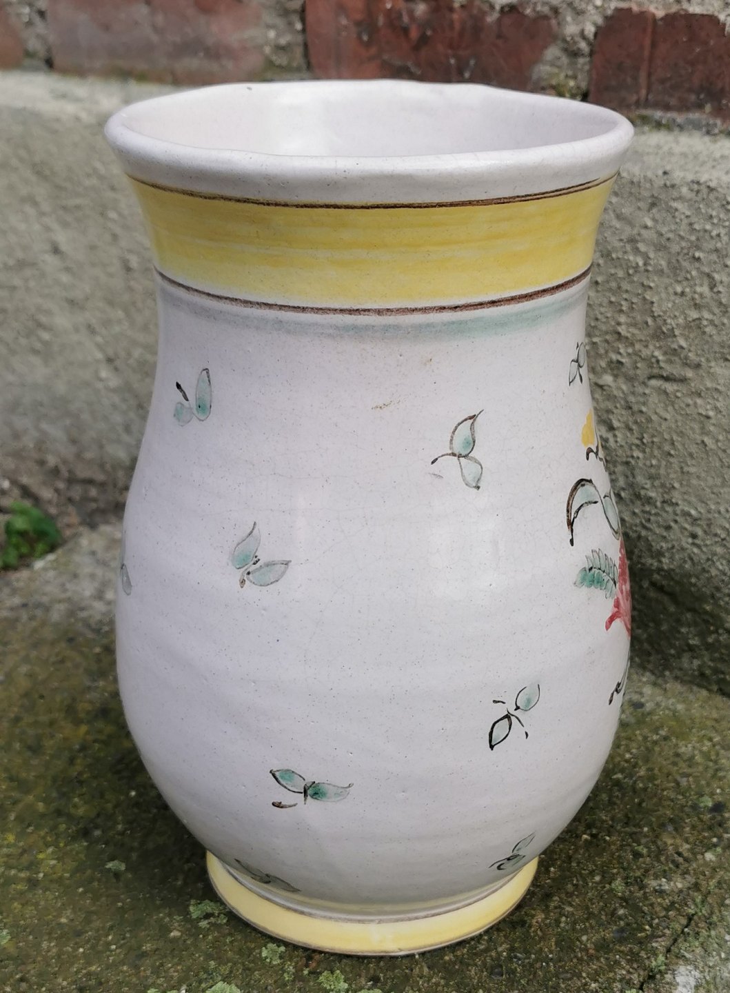 Vase i keramik fra Lars Syberg keramikfabrik fra 1930´ erne. Dekoreret med blomster. Mindre reparation på kanten. Ellers i god stand. Signeret på bunden sammen med fabriksmærke. H. 20 cm.