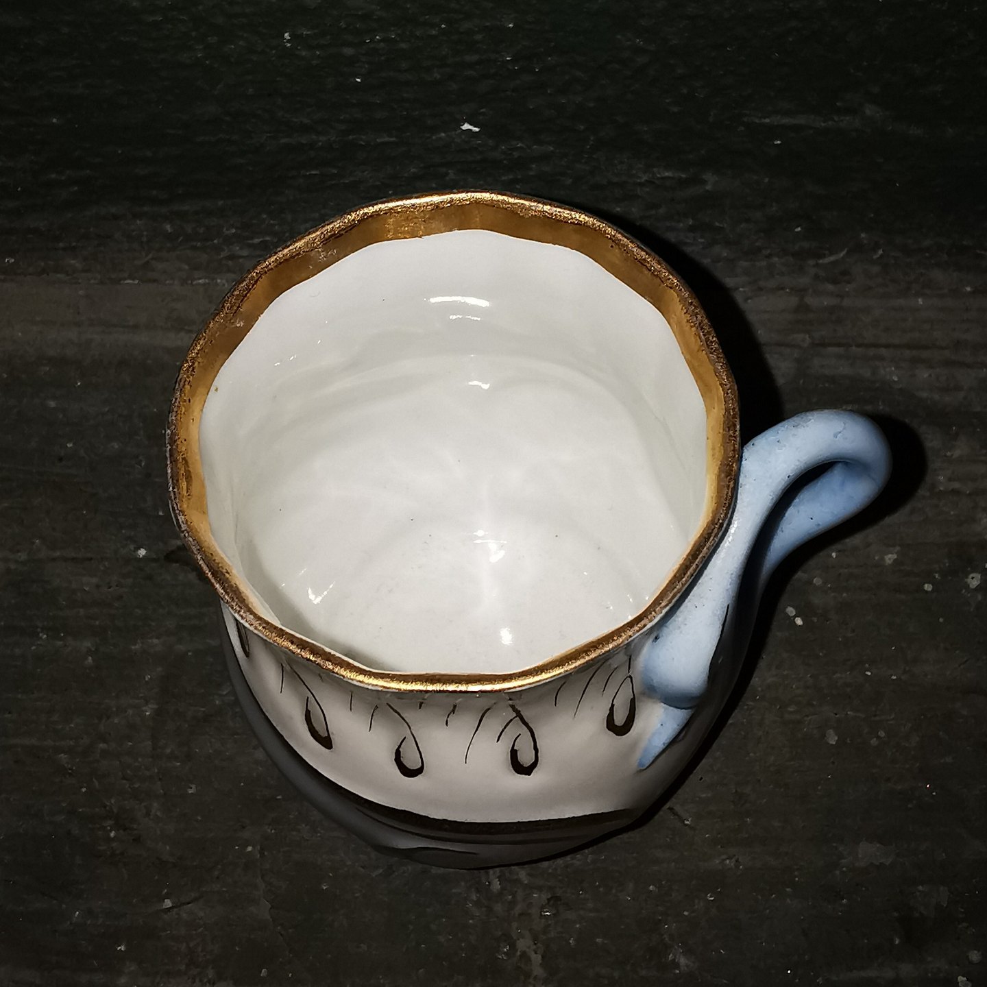 Art Nouveau "Svane-kop" fra Bing & Grøndahl in porcelain fra slutningen af 19. århundrede. Hanken udgør svanens hoved og hals ! I perfekt stand uden skader eller reparationer. Fabriksmærket med B&G i blåt på undersiden. H. 8½ cm