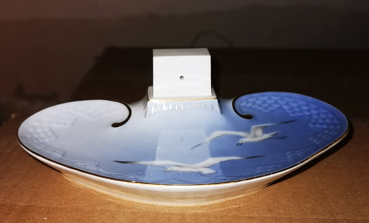 Bing & Grøndahl Mågestel skål i porcelæn som tændstikæske-holder. Fremstår i god stand. 1. sortering. Mål: H. 6 cm L. 18½ cm.