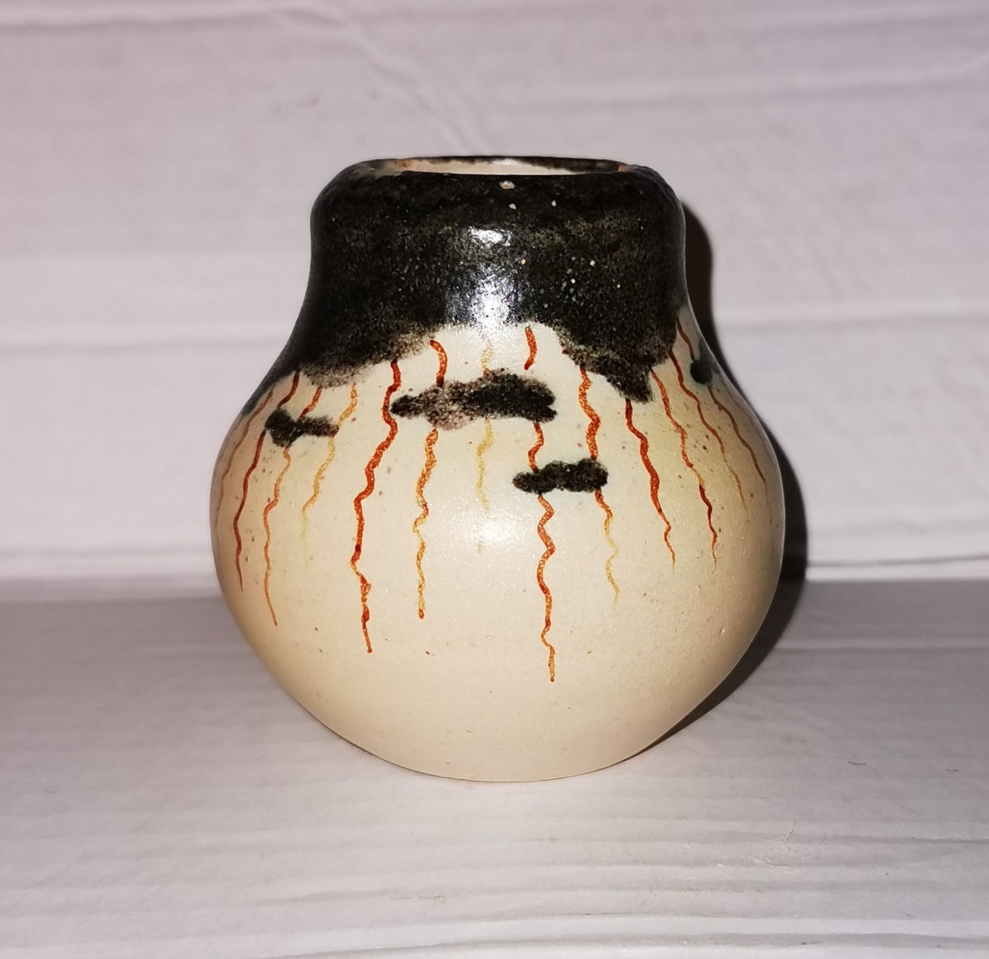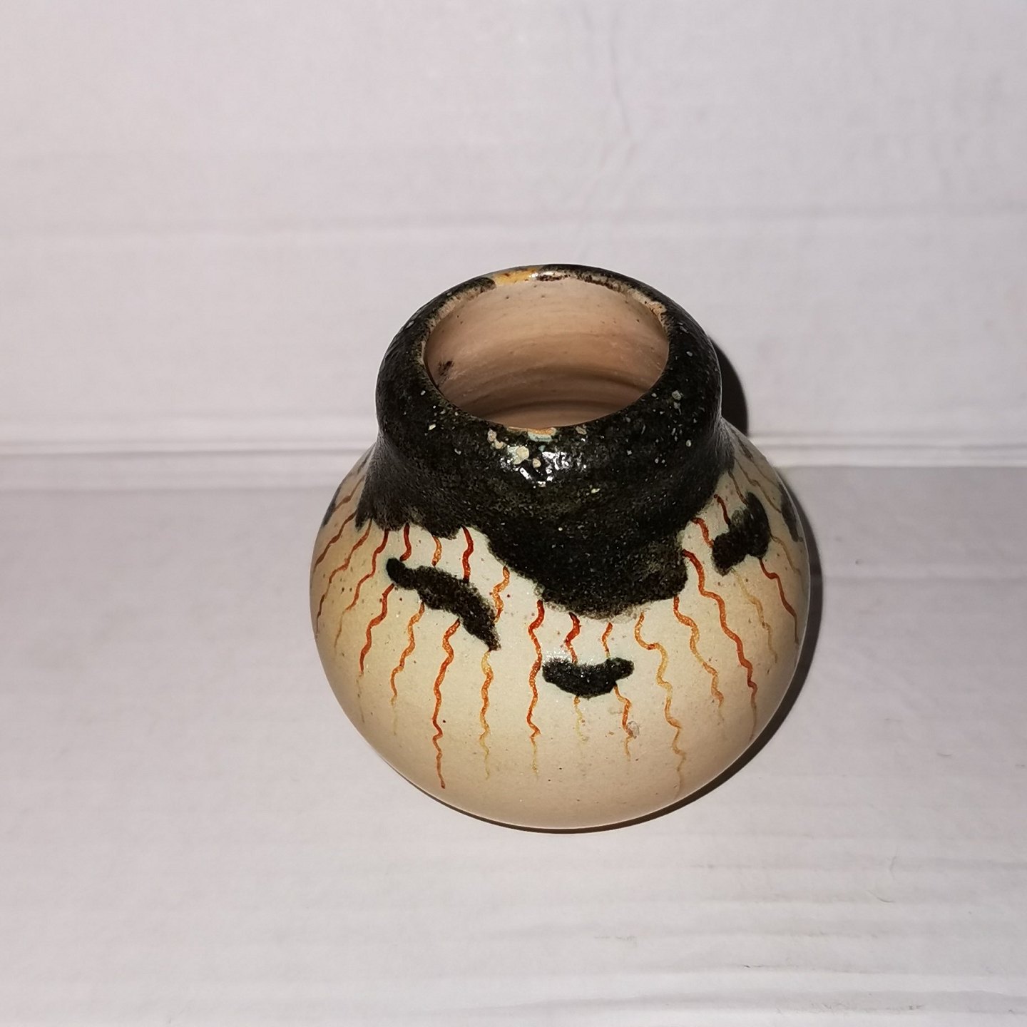 Mindre vase i keramik fra Peter Ipsens Enke. Håndmalet dekoration rundt om vasen. Fremstår i god stand. Mindre brændingsfejl øverst på overfladen øverst. Fabriksmærket på bunden sammen med modelnummer. H. 7½ cm (2.95 inches).