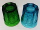 Grønt (SOLGT) og blåt børneglas fra Fyens Glasværk. Fremstår i god stand. H. 5½ cm.