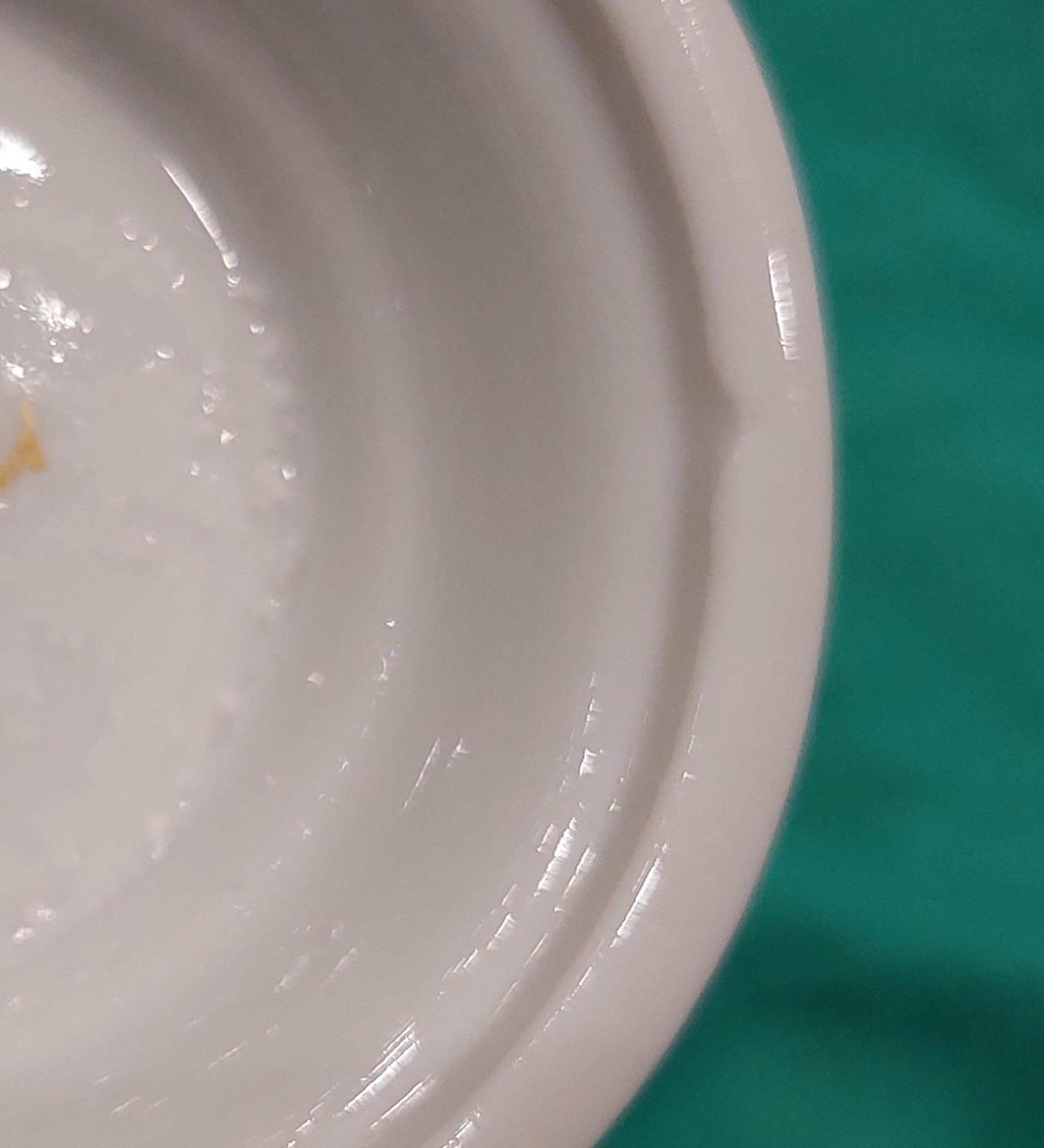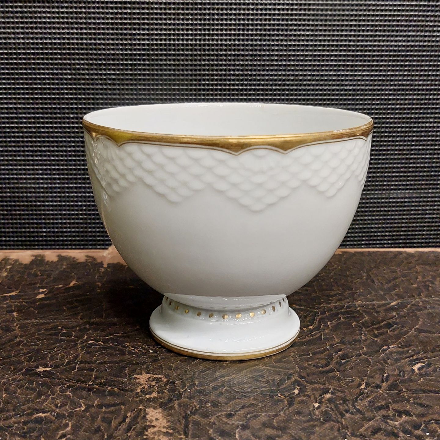 B&G skål I porcelæn. Hvid med guldkant. Fabriksmærket på bunden. Lille bitte skål på undersiden. Mål: H. 8 cm Ø. 11 cm