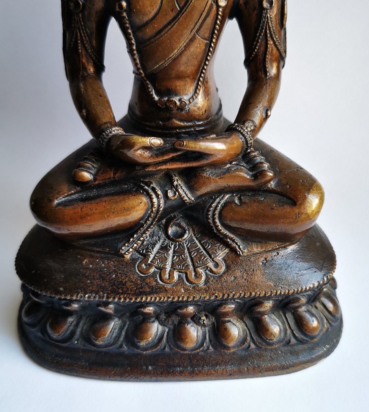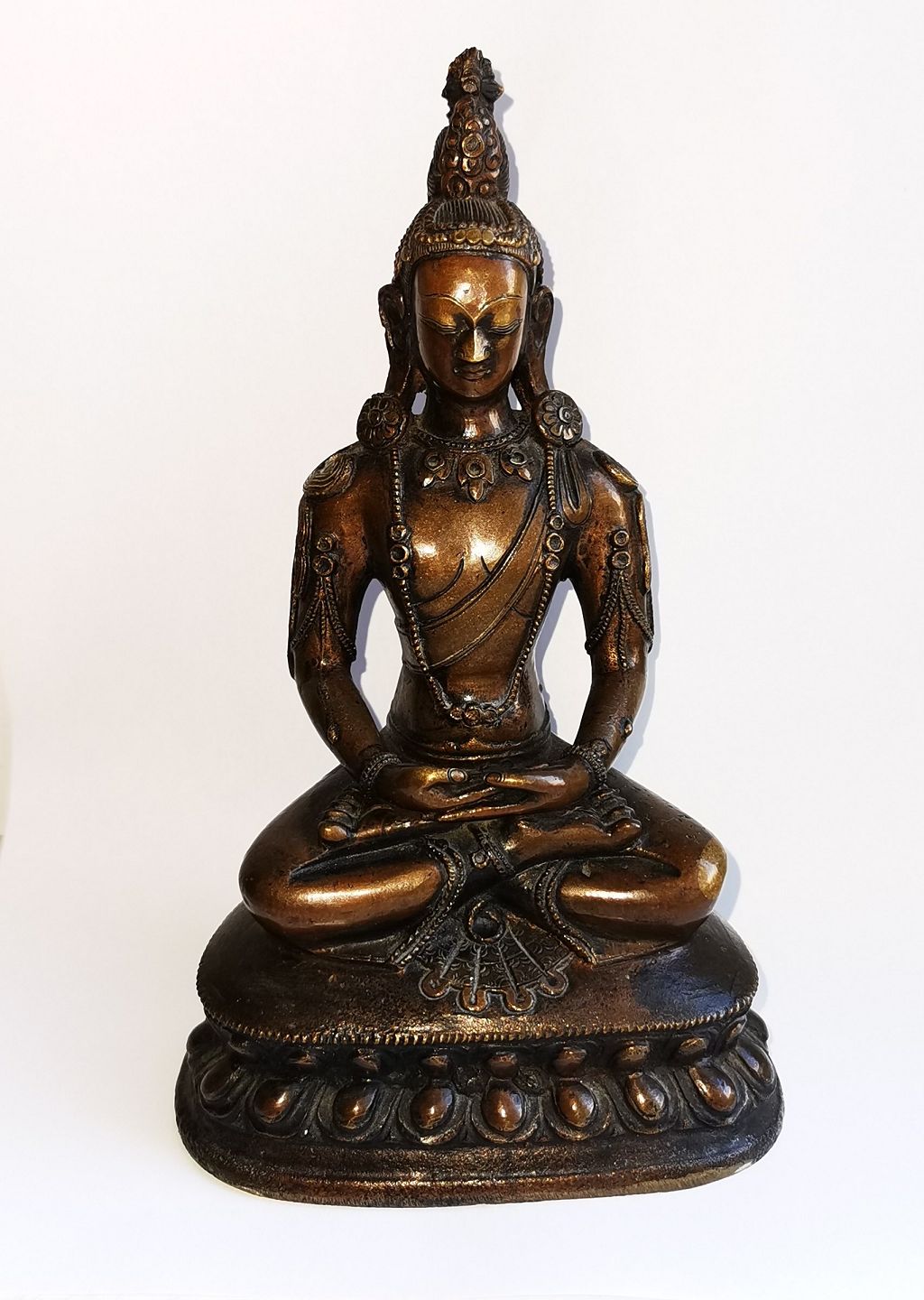 Buddha i bronce fra Thailand med mange detaljer